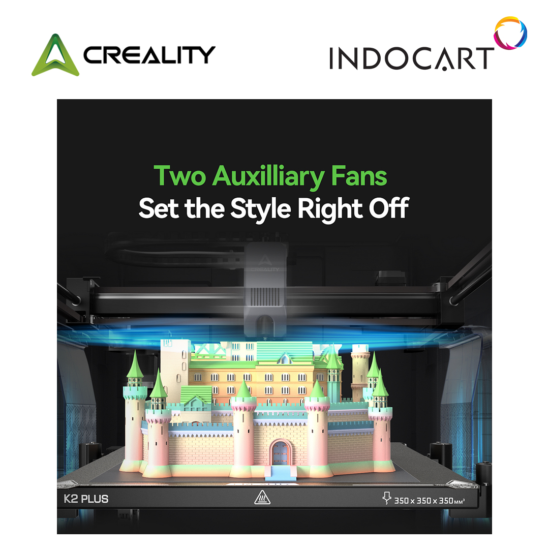 – K2 Plus memiliki dimensi cetak yang luas di 350*350*350mm menjadikan Creality K2 plus sebagai 3D printer dengan sistem Full Enclosured dengan dimensi cetak yang paling besar di kelasnya.