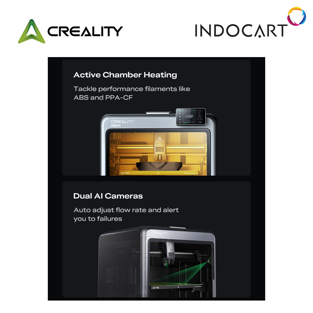 Creality K2 Pro adalah printer 3D kelas profesional yang dirancang untuk kecepatan tinggi, presisi industri, dan pengalaman cetak multi-warna otomatis.