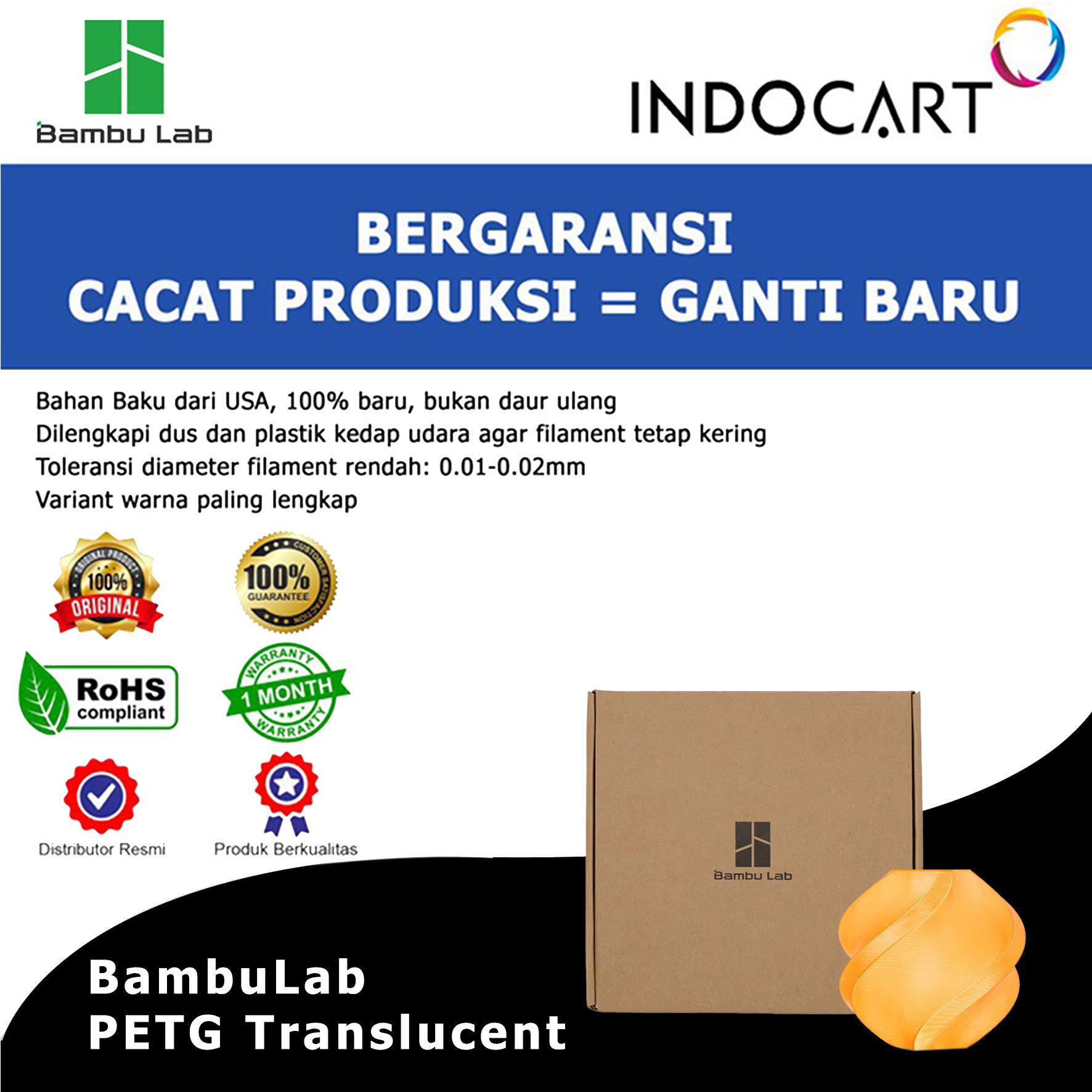 Bambu PETG Translucent adalah filament PETG premium dengan formula khusus yang dirancang untuk memberikan kemudahan pencetakan dan hasil cetak yang bersih. Dibanding PETG standar, filament ini meminimalkan masalah umum seperti nozzle sticking, leakage, stringing, dan clumping, sehingga pengalaman printing jadi lebih mulus.