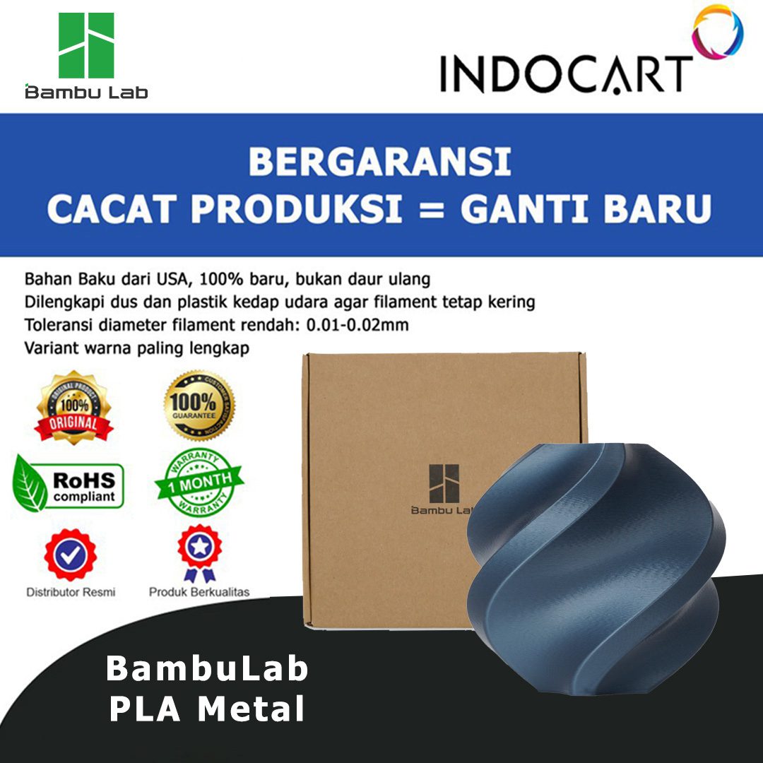 Bambu PLA Metal adalah filament PLA dengan tekstur metalik yang dirancang untuk memberikan tampilan estetika seperti permukaan logam pada hasil cetak 3D Anda. Meskipun menawarkan kilau dan efek permukaan logam yang canggih, filament ini tidak mengandung filler logam asli, sehingga tetap mempertahankan performa PLA yang mudah dicetak dan serbaguna.