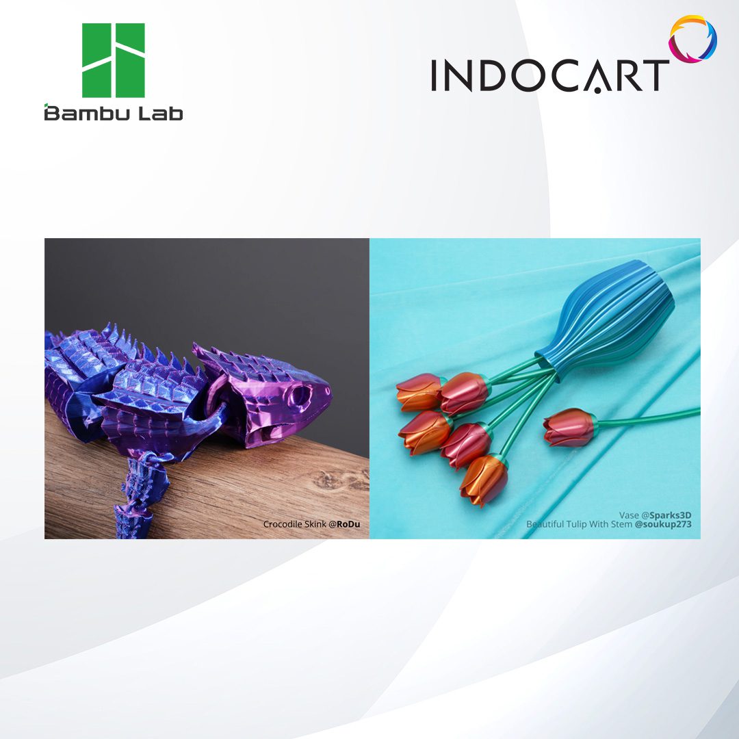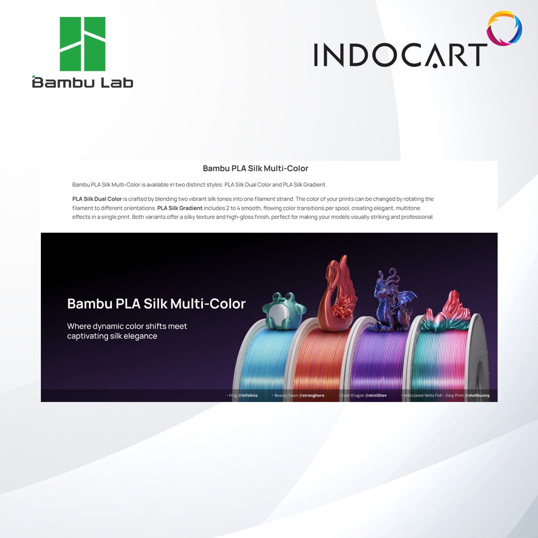 Bambu PLA Silk Dual Color adalah filament PLA yang unik, dibuat dari dua warna silk individual yang menyatu dalam satu helai filament. Filament ini mempertahankan tekstur silk yang halus dan kilap tinggi, dengan transisi warna yang alami dan gradien halus. Kamu dapat mengubah warna yang terlihat dengan memutar orientasi filament saat mencetak, menciptakan efek warna dinamis yang memikat.