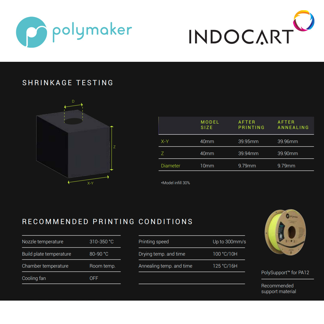 Printing Temperature: 310˚C – 350˚C