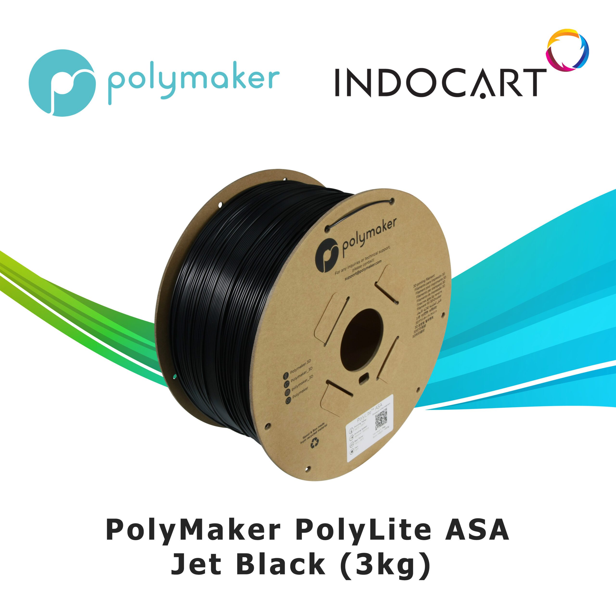 3D Printer FILAMENT PolyMaker PolyLite ASA Superior Weather and UV Resistance-JetBlack 1.75mm-3Kg