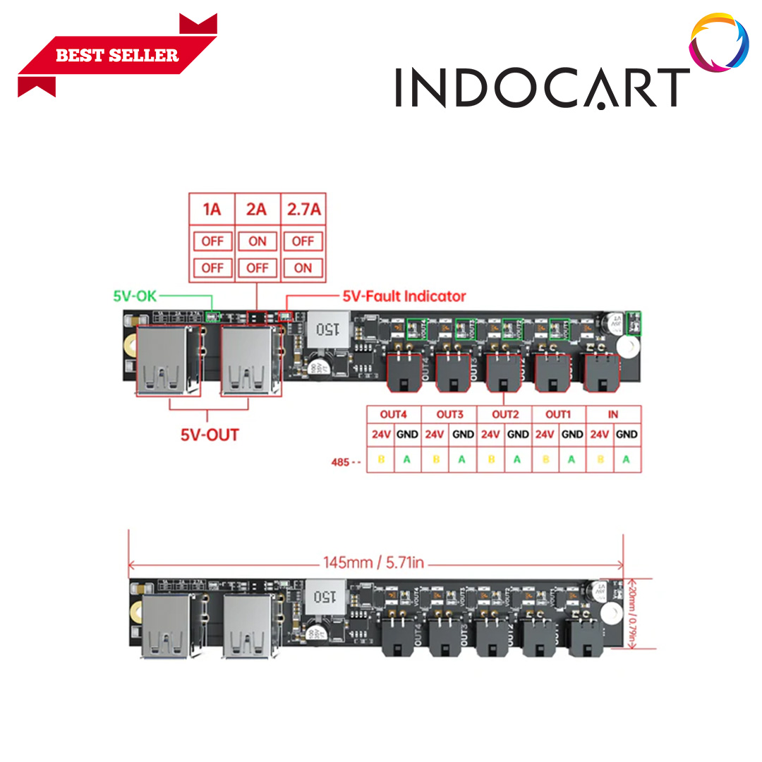 Gunakan sakelar DIP untuk memilih antara 1A, 2A, dan 2.7A untuk output 5V, memastikan perlindungan yang tepat untuk perangkat Anda.