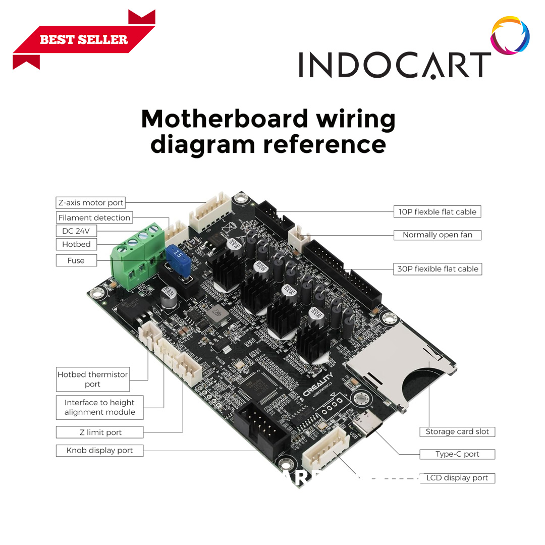 Creality Mainboard Kit for Creality Ender 3 V3 SE adalah papan utama (motherboard) yang mengontrol seluruh operasi printer 3D Creality Ender 3 V3 SE . Berikut beberapa fungsi utamanya: