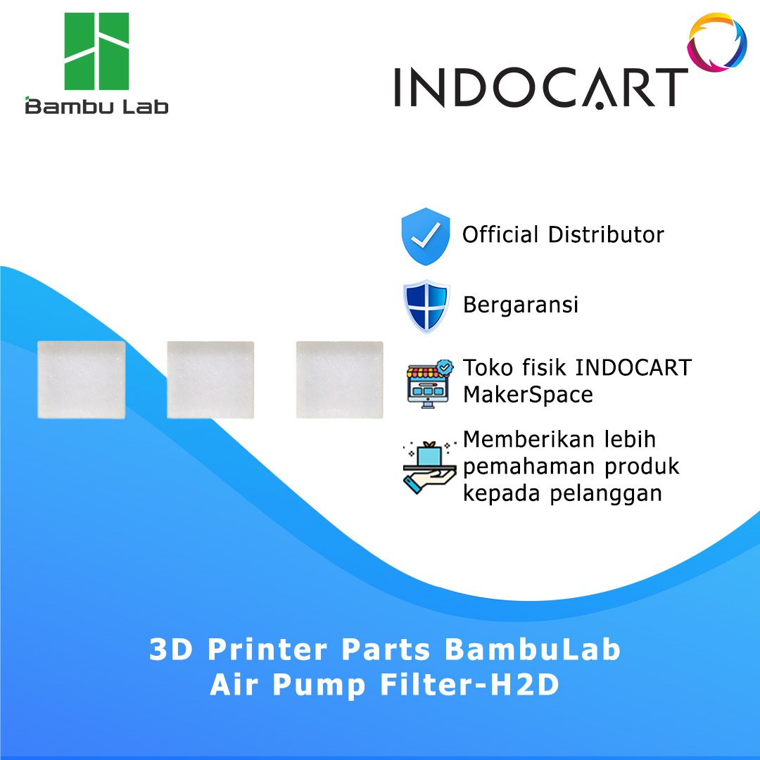 BambuLab Air Pump Filter BambuLab H2D adalah filter udara resmi OEM yang dirancang khusus untuk digunakan bersama pompa udara built-in pada printer 3D BambuLab H2D. Filter ini berfungsi untuk menyaring debu dan partikel kotoran dari udara yang masuk ke pompa, menjaga agar pompa udara tetap bekerja dengan optimal dan memperpanjang umur komponennya.