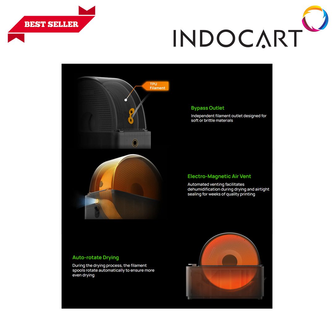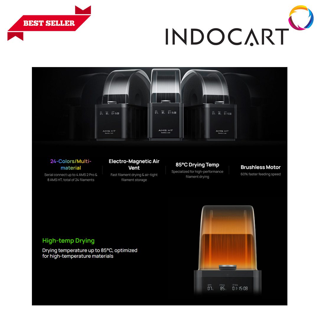 Dilengkapi fitur pengeringan suhu tinggi hingga 85°C, ventilasi elektromagnetik pintar, serta motor brushless berkecepatan tinggi, AMS HT memastikan filamen tetap kering, stabil, dan siap digunakan untuk mencetak dengan hasil berkualitas tinggi, terutama pada material teknik dan filamen yang sensitif terhadap kelembaban.