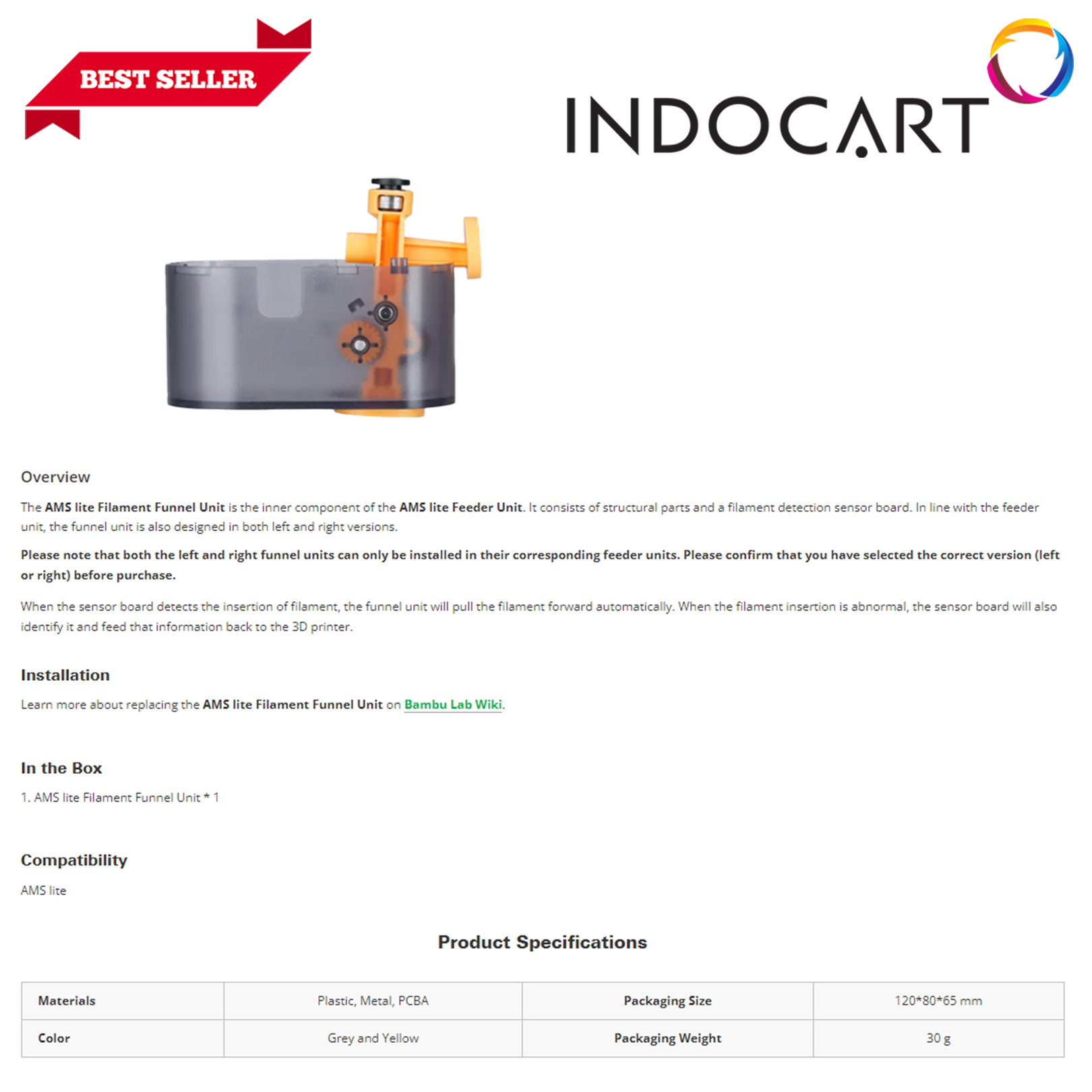 AMS lite Filament Funnel Unit adalah komponen dalam Feeder Unit AMS lite.terdiri dari bagian struktural dan papan sensor