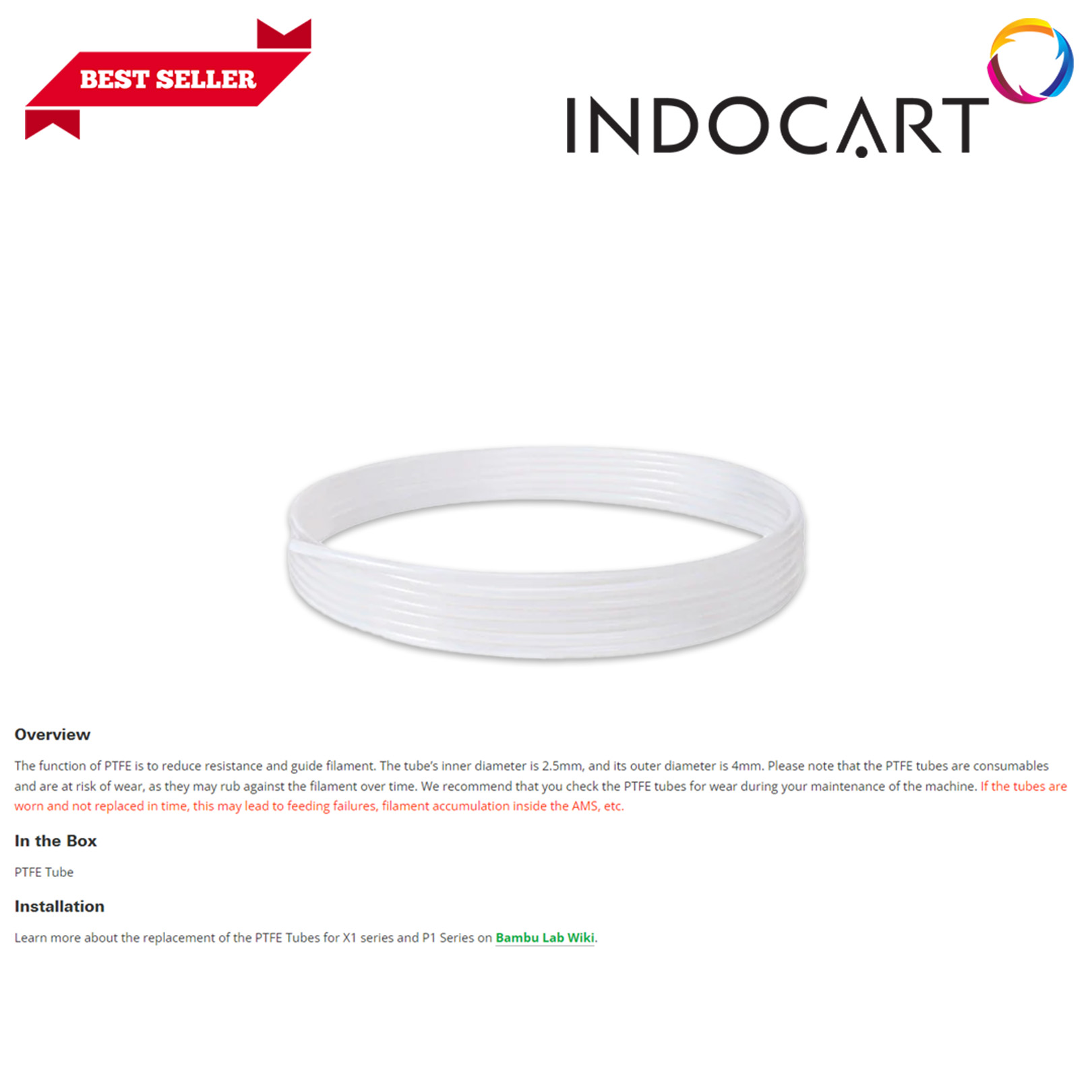 Fungsi PTFE adalah untuk mengurangi resistensi dan memandu filamen. Diameter dalam tabung adalah 2,5 mm,