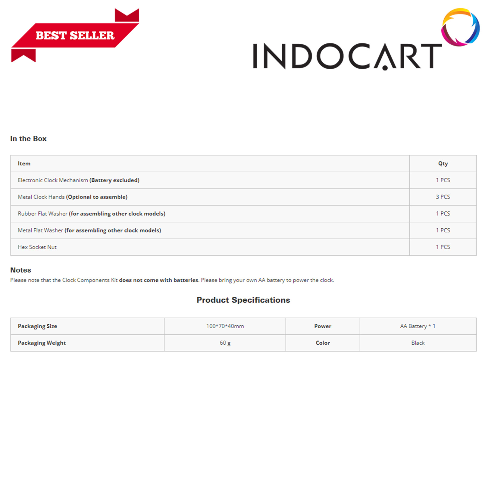 Kit Clock Components berisi semua komponen cetakan non-3D untuk merakit Jam yang berfungsi penuh.