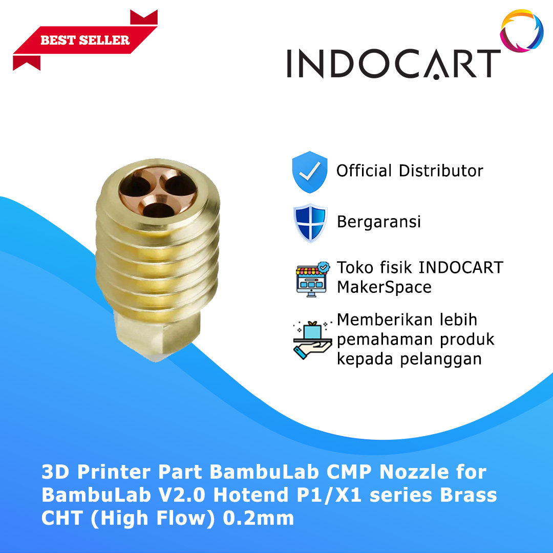 Note : Part Compatible Brass CHT High Flow Nozzle V2.0 ini hanya bisa di gunakan untuk type Hotend Compatible dan tidak bisa di gunakan pada Hotend Original Bambulab P1/X1 Series