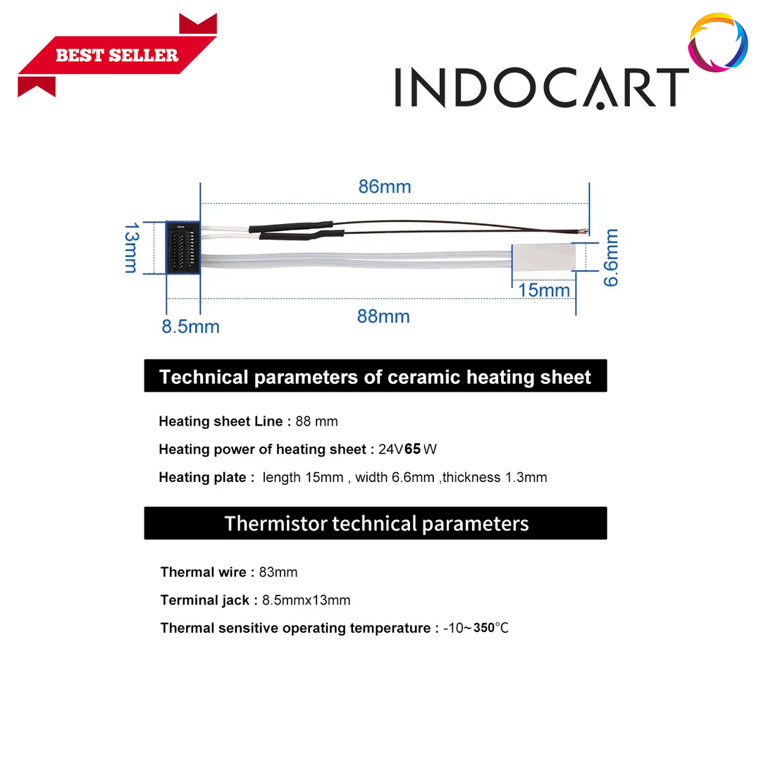 Pemanas keramik dapat memanaskan nozzle hingga 300℃, sementara thermistor memiliki pengukuran suhu yang sangat akurat dan desain struktur yang andal.