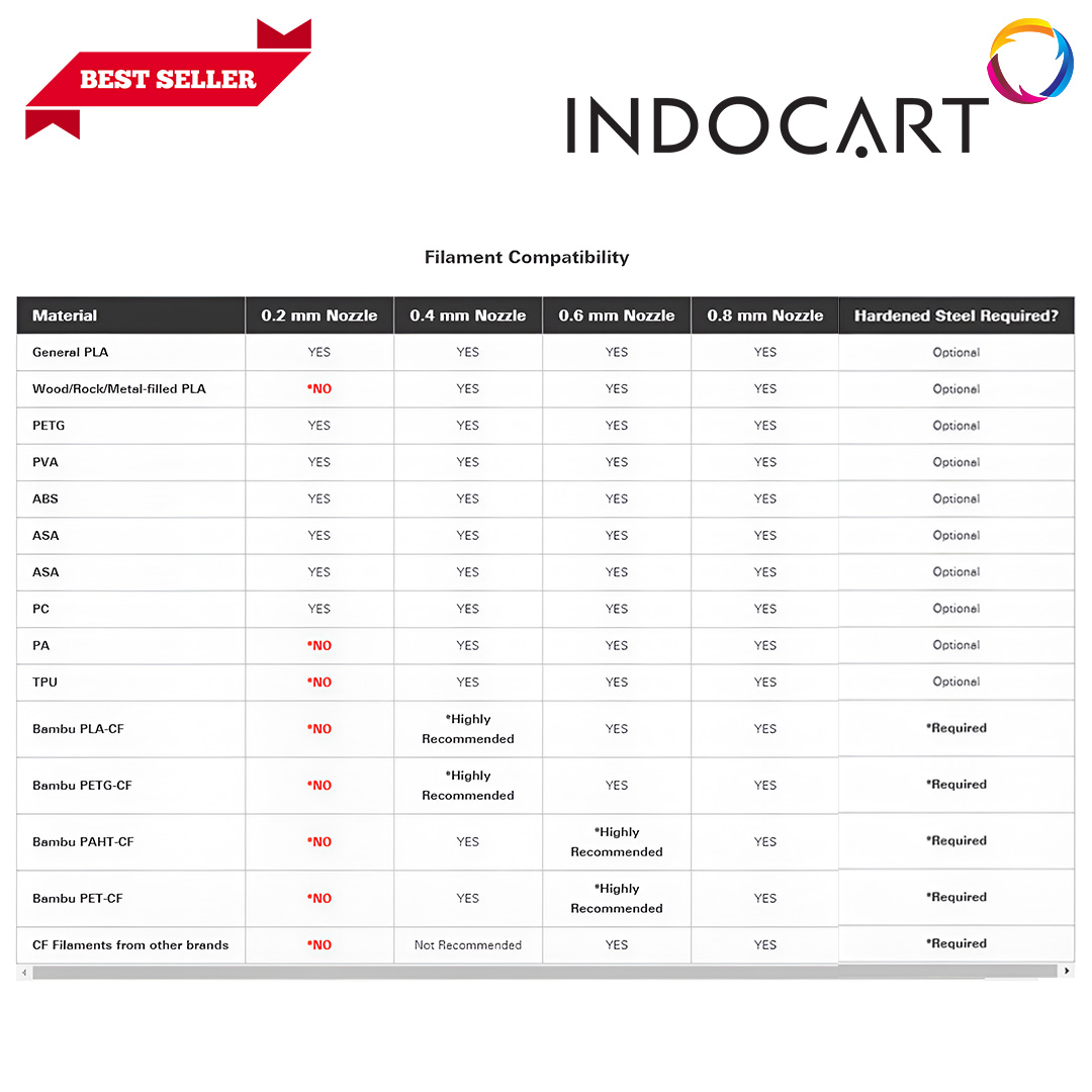 Compatible Filament: PLA/PETG/TPU/ABS/PA/PC/PA-CF/PA-GF