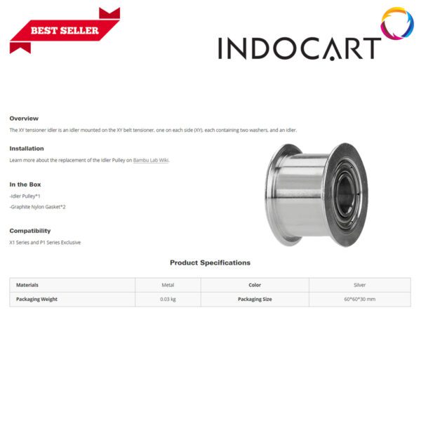 Idler Pulley merupakan komponen penting pada sistem penggerak belt printer 3D Bambu Lab, yang membantu menjaga ketegangan dan kelancaran pergerakan sabuk (belt).