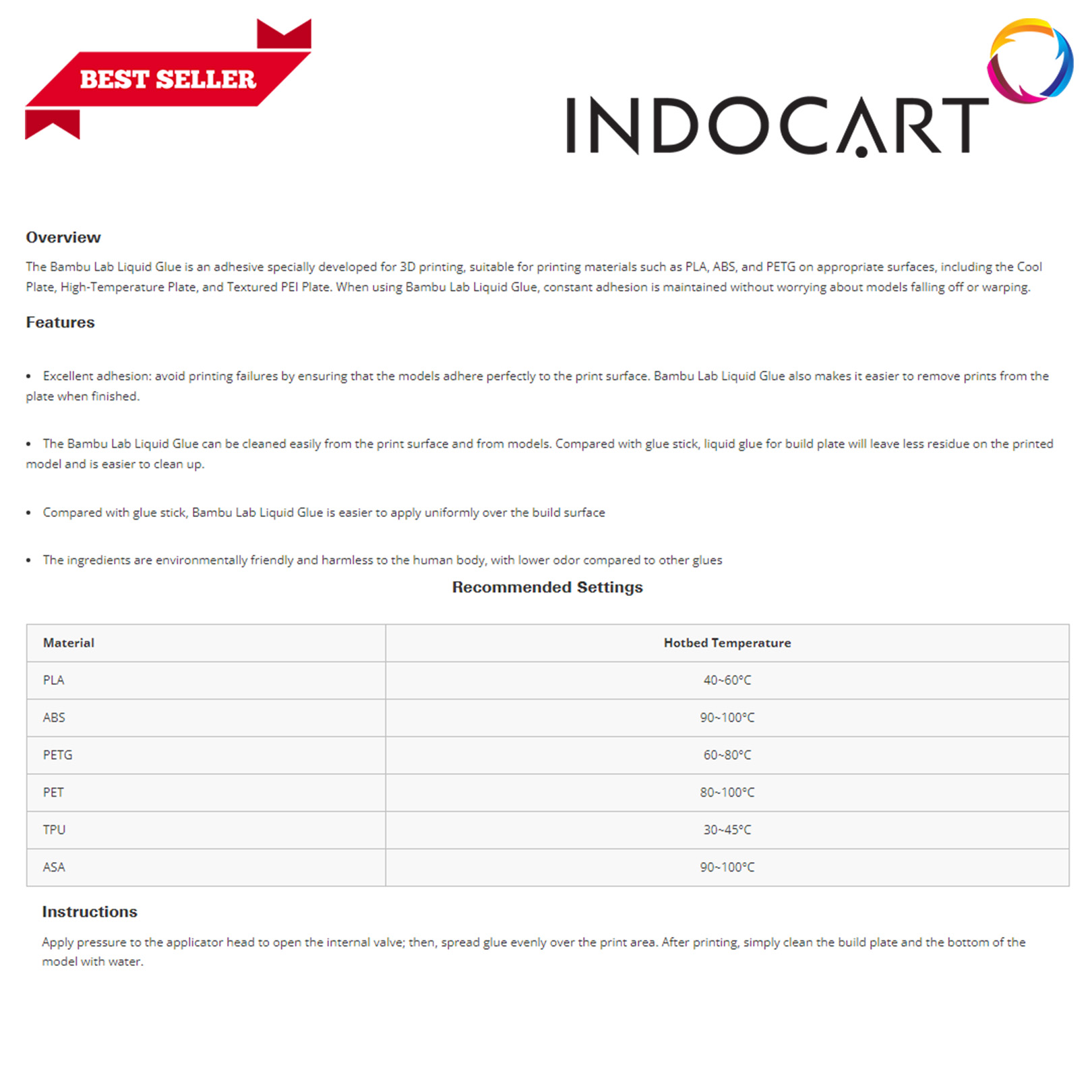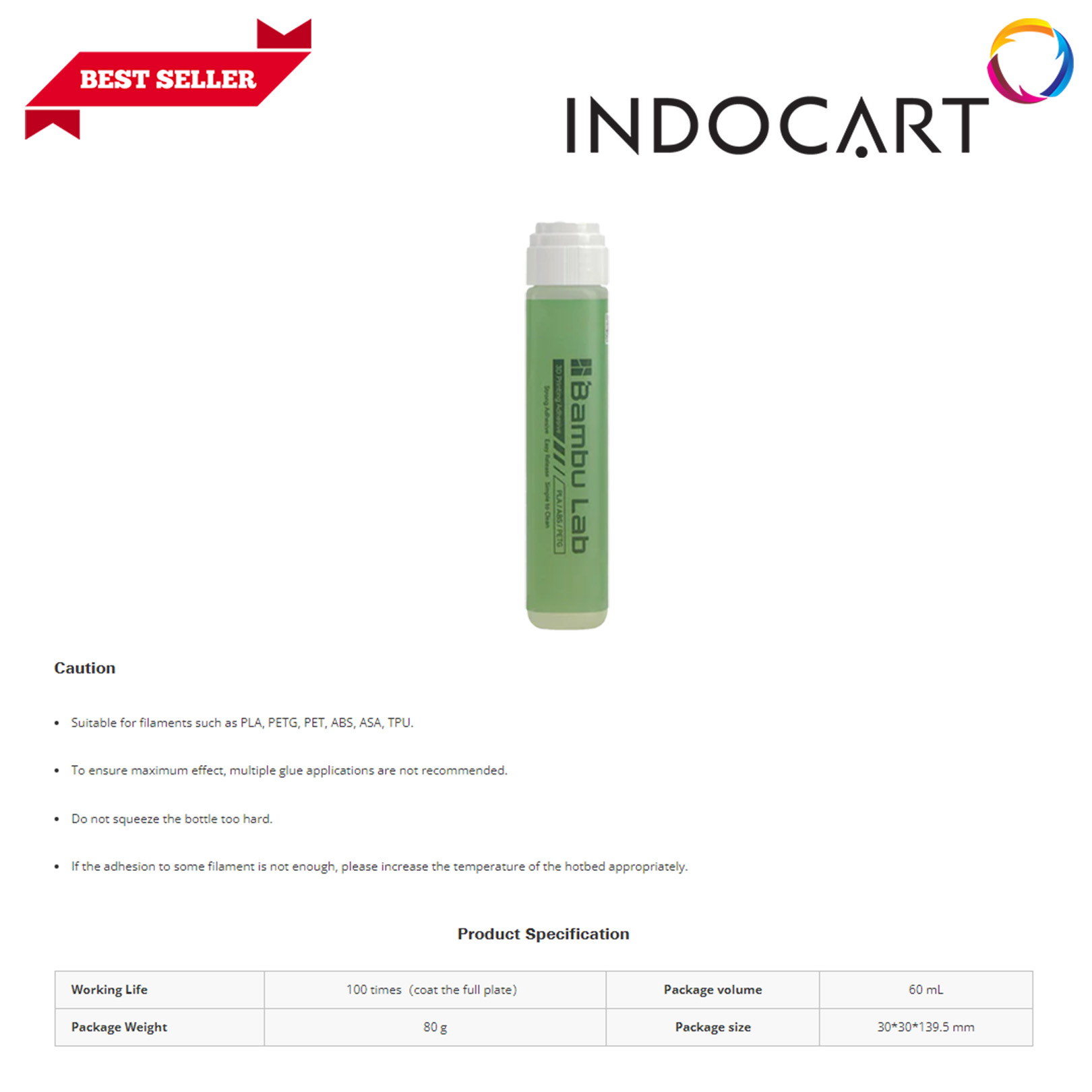 cocok untuk bahan cetak seperti PLA, ABS, dan PETG pada permukaan yang sesuai,