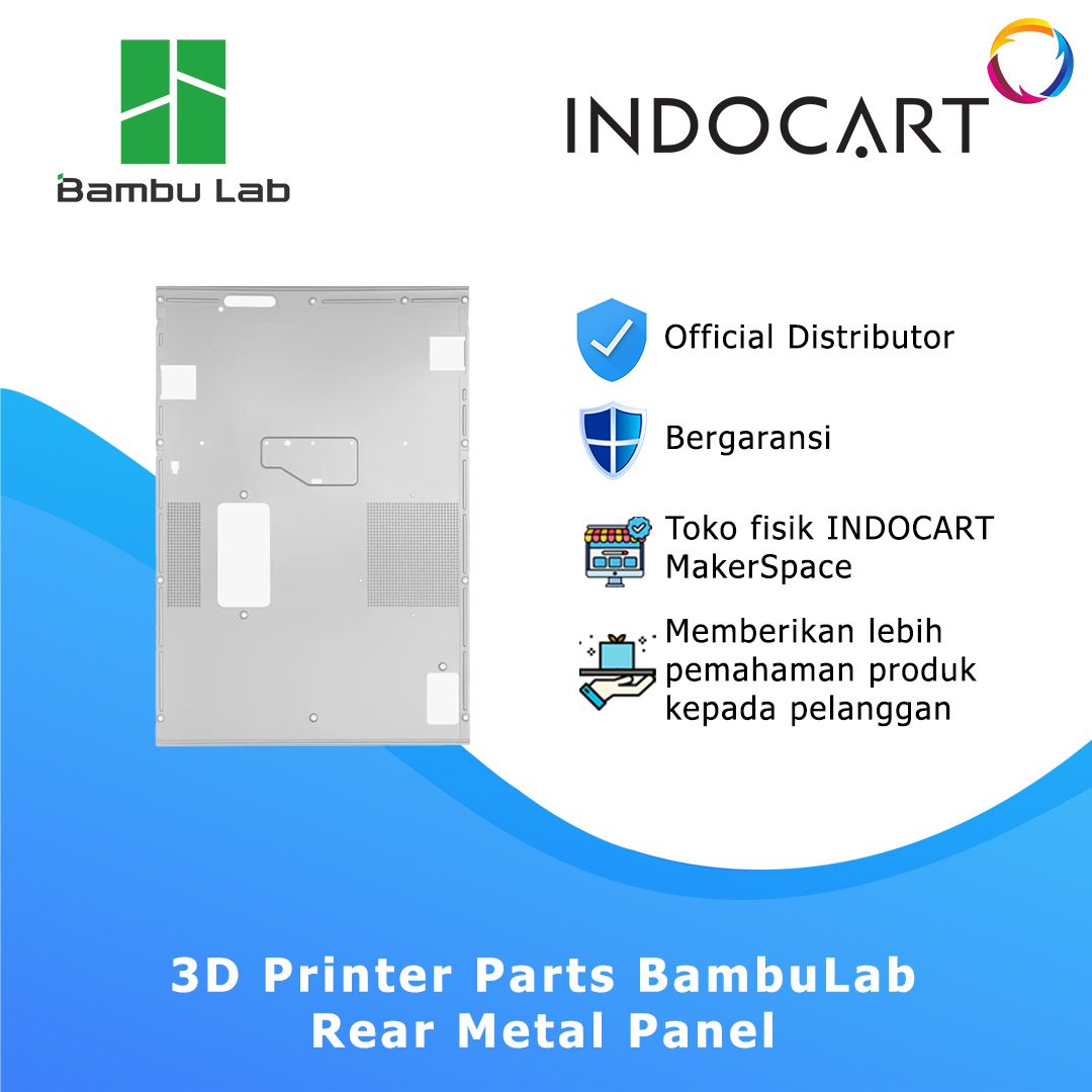 Panel Belakang Logam (Rear Metal Panel Cover) original untuk Bambu Lab X1 Carbon, berfungsi sebagai pelindung utama bagian belakang printer sekaligus menjaga kestabilan struktur dan keamanan komponen internal.