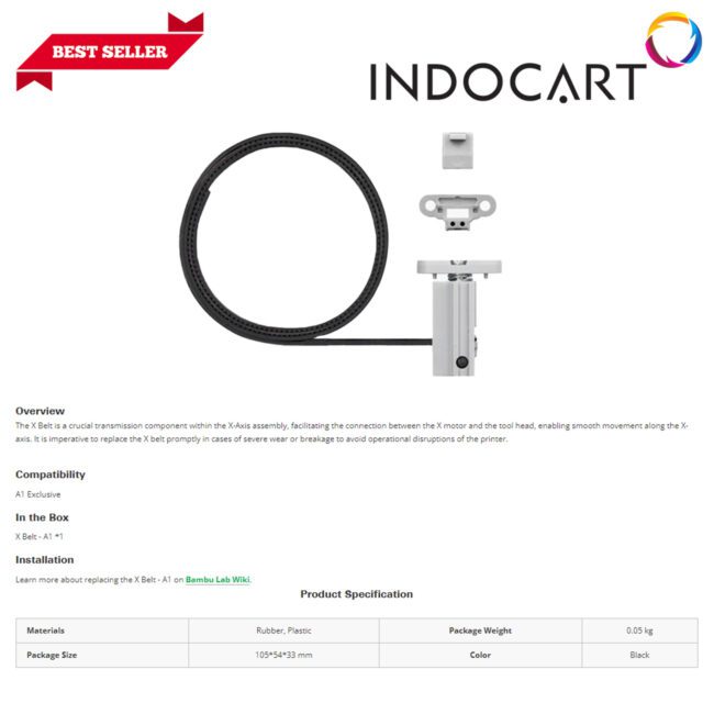 Belt X adalah komponen transmisi yang penting dalam rangkaian sumbu X, yang menghubungkan X Motor dengan Tool Head, memungkinkan pergerakan yang lancar sepanjang sumbu X. Penting untuk segera mengganti Belt X dalam kasus keausan atau kerusakan yang parah agar tidak mengganggu operasi printer.