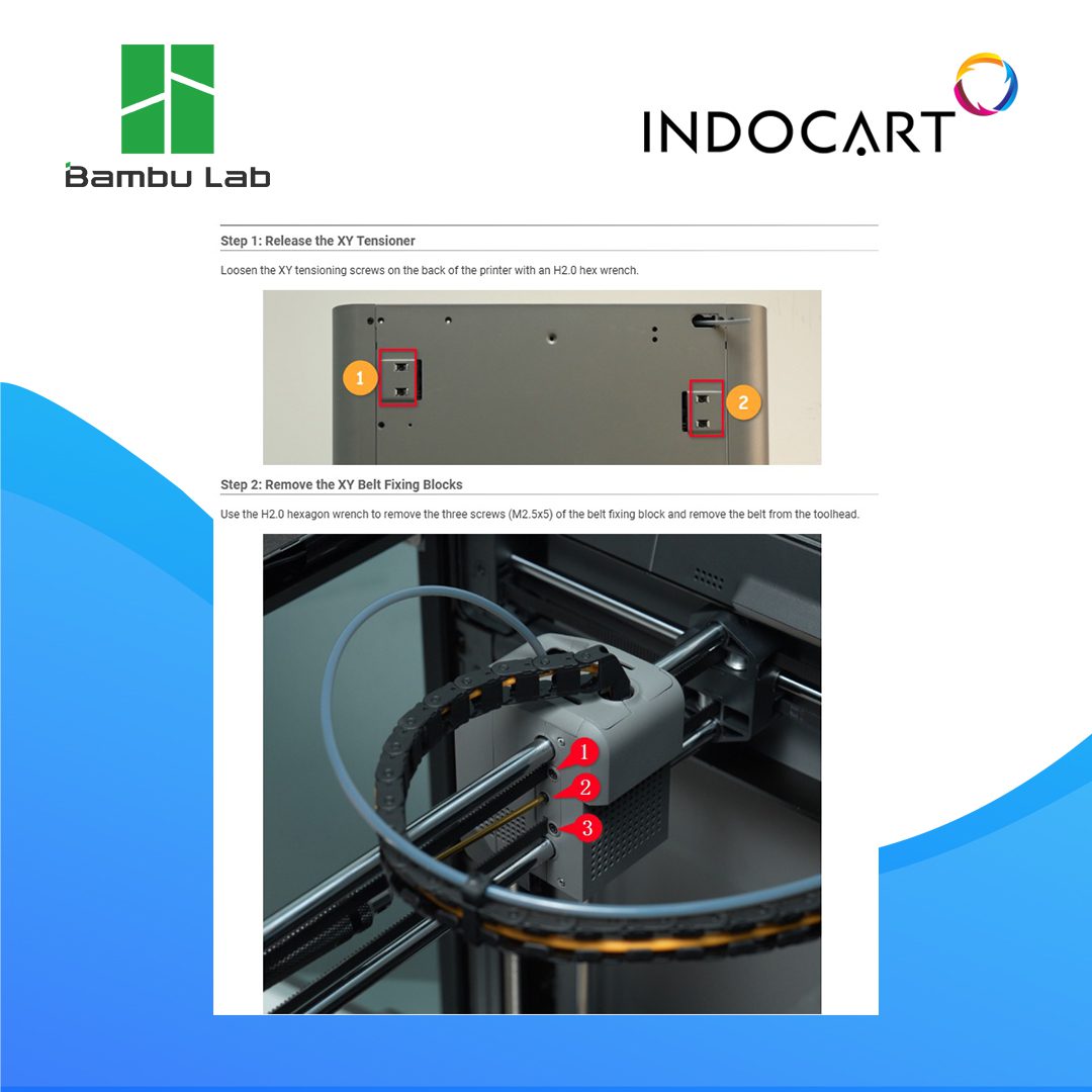 Printer Bambu Lab P2S menggunakan dua buah XY belt, masing-masing berukuran panjang 1444 mm dan lebar 7 mm.