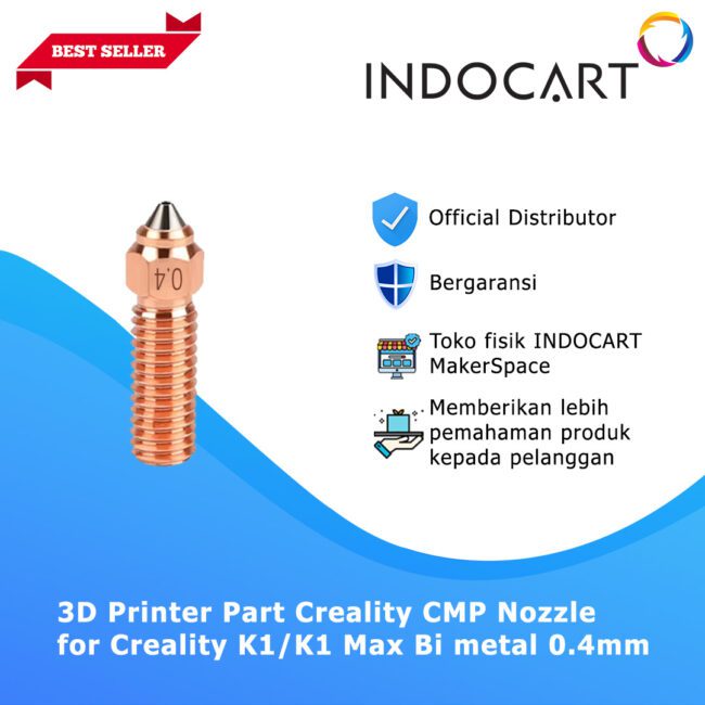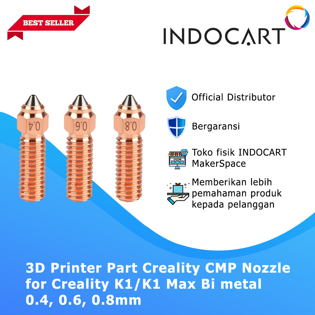Nozzle bi-metal berkinerja tinggi yang kompatibel dengan Creality K1 dan K1 Max. Dirancang dengan kombinasi dua jenis logam — tembaga untuk konduksi panas optimal dan baja tahan abrasi di ujung nozzle — sehingga menghasilkan cetakan presisi tinggi dengan daya tahan luar biasa.