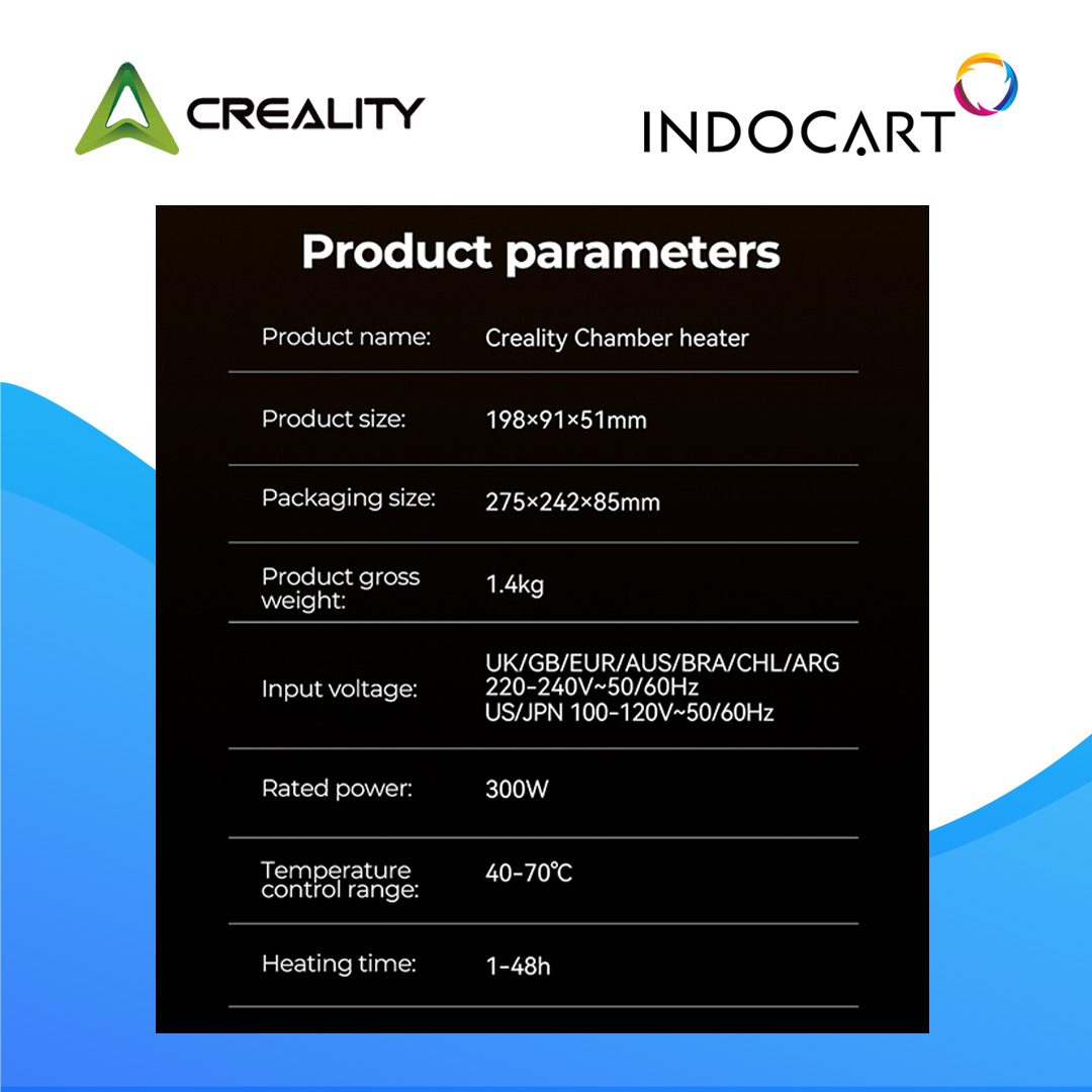 Creality OEM Chamber Heater berfungsi menjaga suhu ruang cetak (printing chamber) tetap stabil selama proses pencetakan 3D. Dengan temperatur yang konsisten,