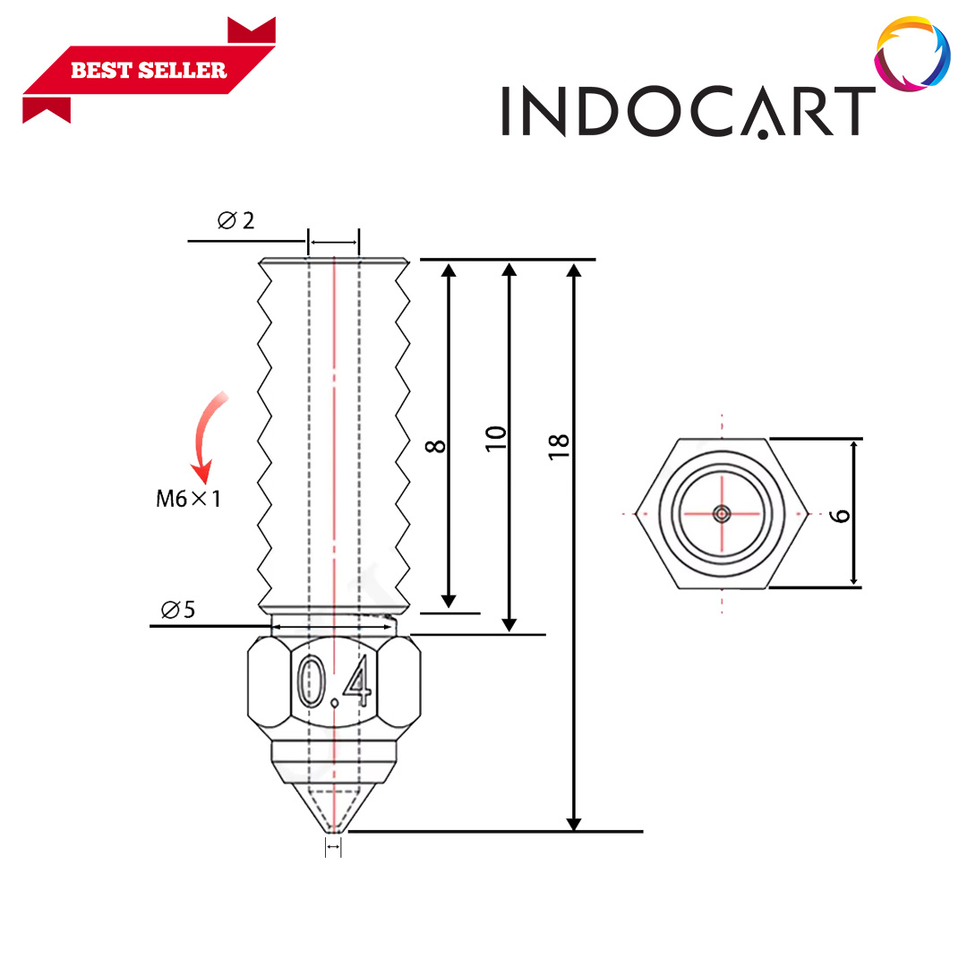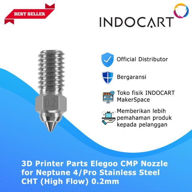 – Suhu maksimum nozzle stainless steel ini dapat mencapai 500°C, cocok untuk pencetakan 3D pada suhu tinggi.