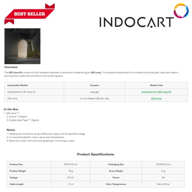 INDOCART 3D Printer Parts For BambuLab Mystey Kit Accessories