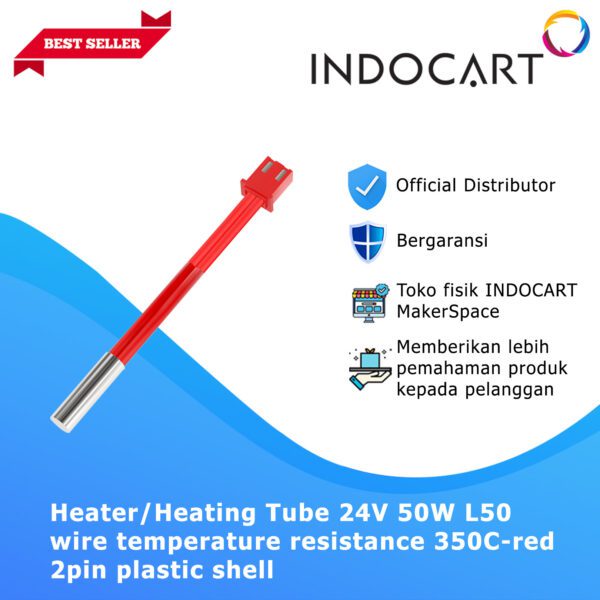 Heating tube OEM asli dari Creality berukuran panjang 50 mm dengan daya 50 watt dan tegangan 24V. Dilengkapi kabel 2-pin dengan warna merah, heater ini dirancang untuk hotend printer 3D Creality Ender 3S1Pro dan CR-10 Smart Pro. Memiliki kemampuan tahan suhu hingga 350°C, cocok untuk pencetakan material suhu tinggi yang menuntut kestabilan dan performa optimal.