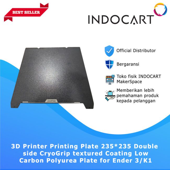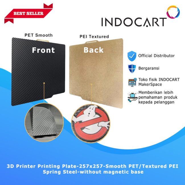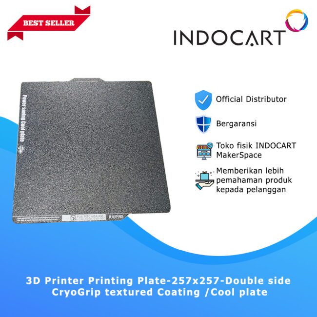 Printing Plate 257x257mm Double Side CryoGrip Textured Coating (Cool Plate) adalah build plate generasi terbaru yang dirancang untuk memberikan daya rekat kuat saat printing dan kemudahan pelepasan model setelah selesai. Terbuat dari spring steel berkualitas tinggi, plate ini dilapisi CryoGrip Textured Coating pada kedua sisi, sehingga dapat digunakan bolak-balik untuk memperpanjang masa pakai.