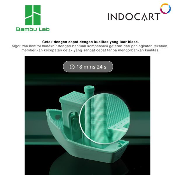 P1S juga mengusung kecepatan tinggi dan kualitas cetak luar biasa berkat algoritma canggih yang memadukan kompensasi vibrasi dan pressure advance.