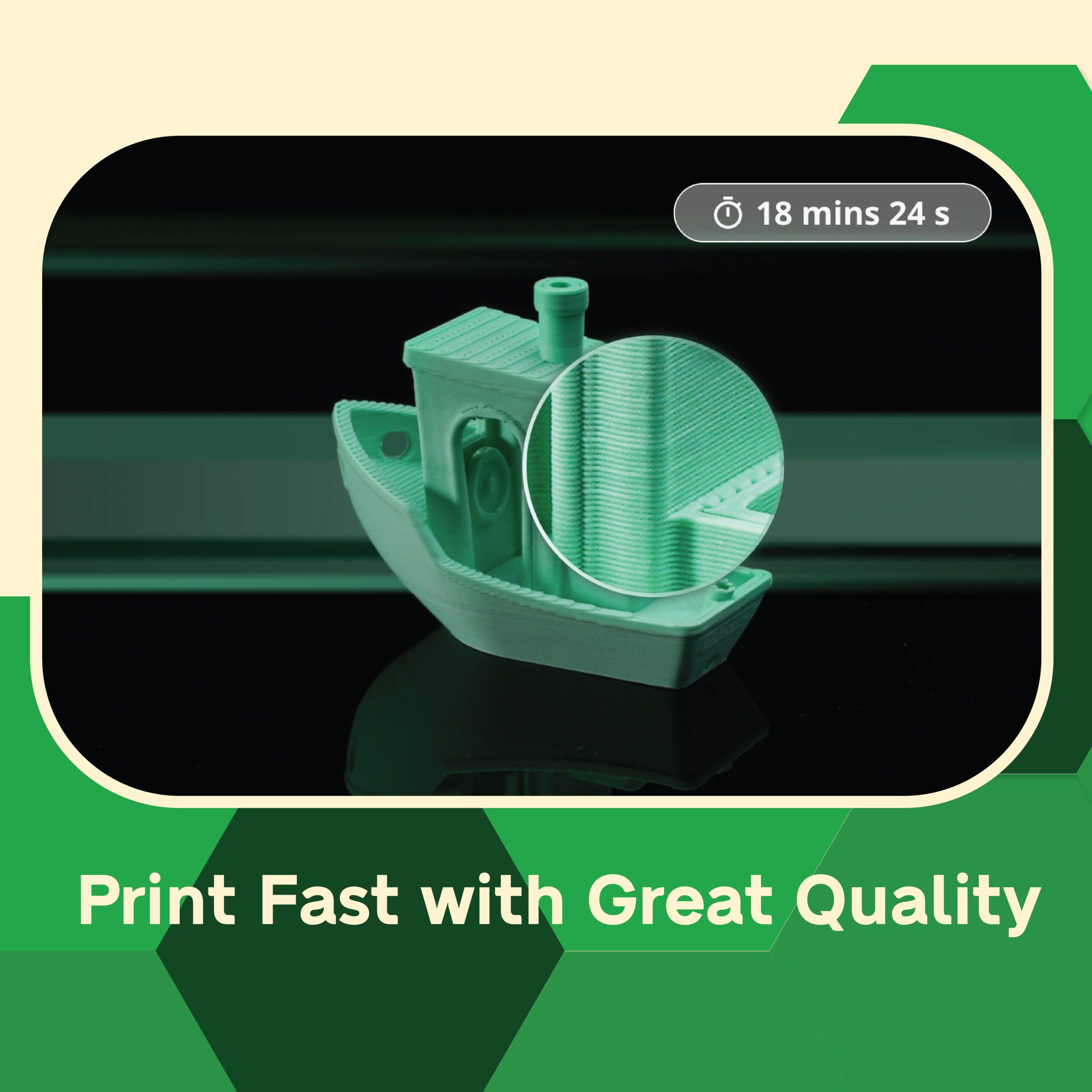 Bambu Lab P1S hadir dengan performa menyeluruh langsung dari dalam kotak. Tanpa perlu pengaturan rumit, cukup tekan tombol print,