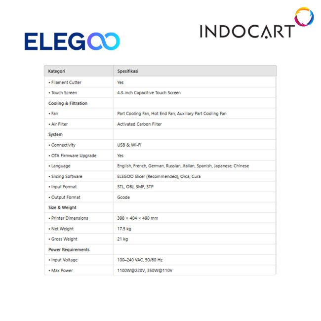 Garansi sparepart (cacat pabrik) berlaku 1 tahun utk semua printer 3D yang dijual INDOCART