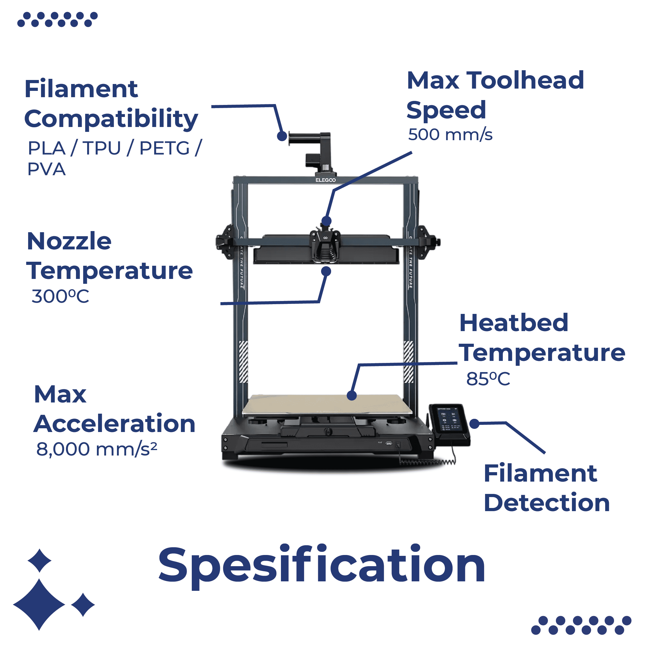 – Supported Filament : PLA, PETG, TPU, PVA