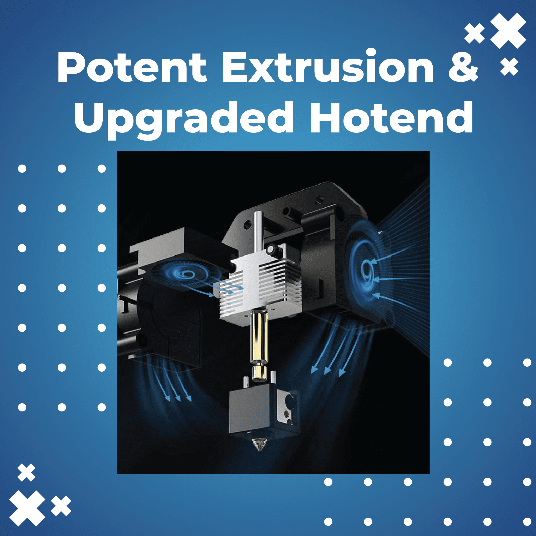 Dual-Gear Direct Drive Extruder dengan rasio reduksi 5,2:1 untuk ekstrusi yang halus dan konsisten.