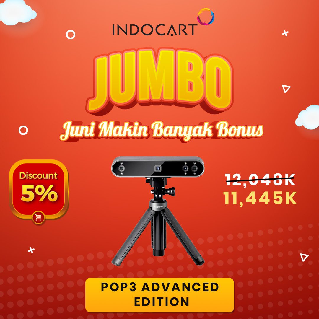 pemindaian 3D Objek berwarna-warni, realistis, lengkap dengan kamera RGB yang ditingkatkan POP 3, dengan aperture yang 30% lebih besar, memungkinkan lebih banyak cahaya mencapai sensor, dan LED putih ganda yang dipasang pada kamera menghilangkan bayangan dari objek.