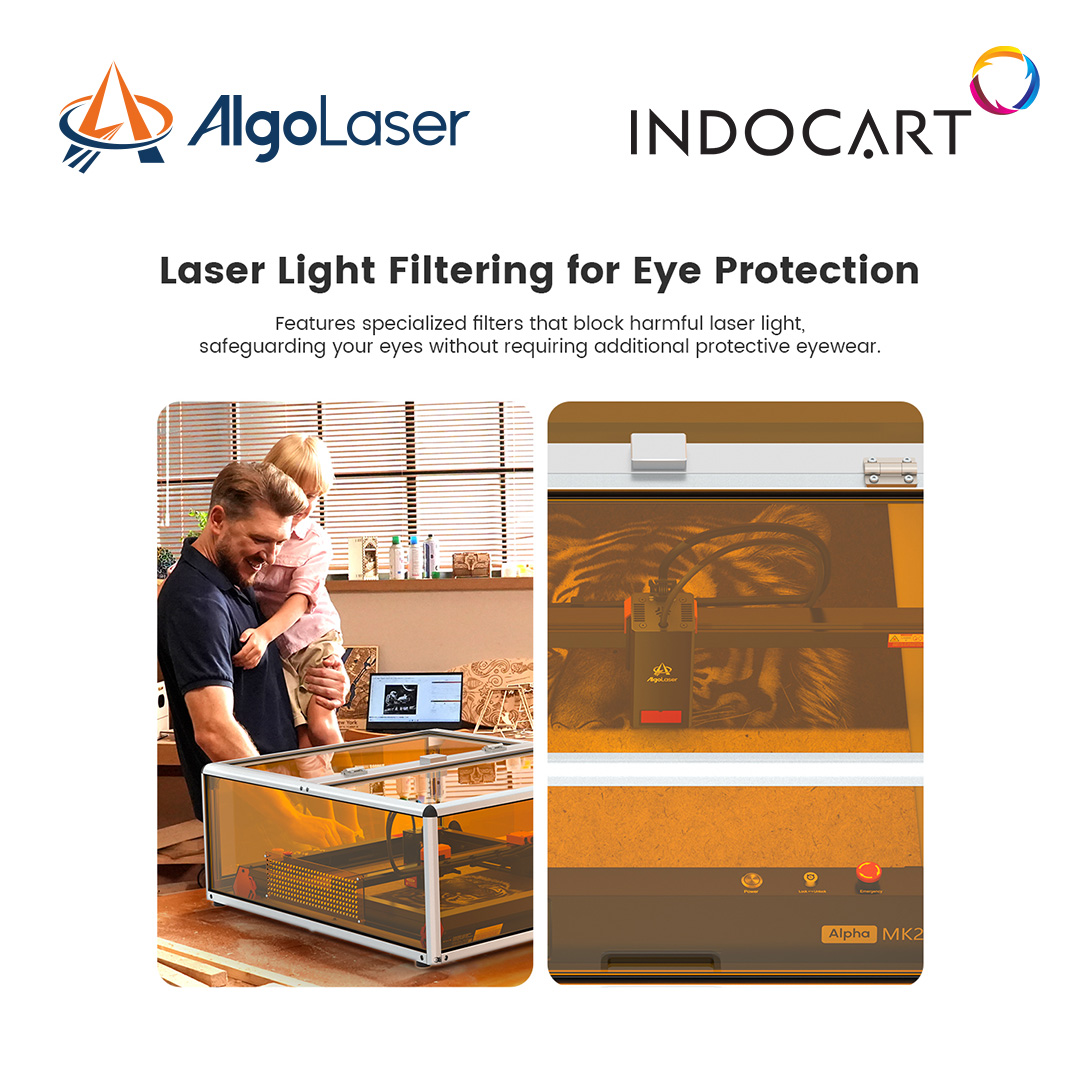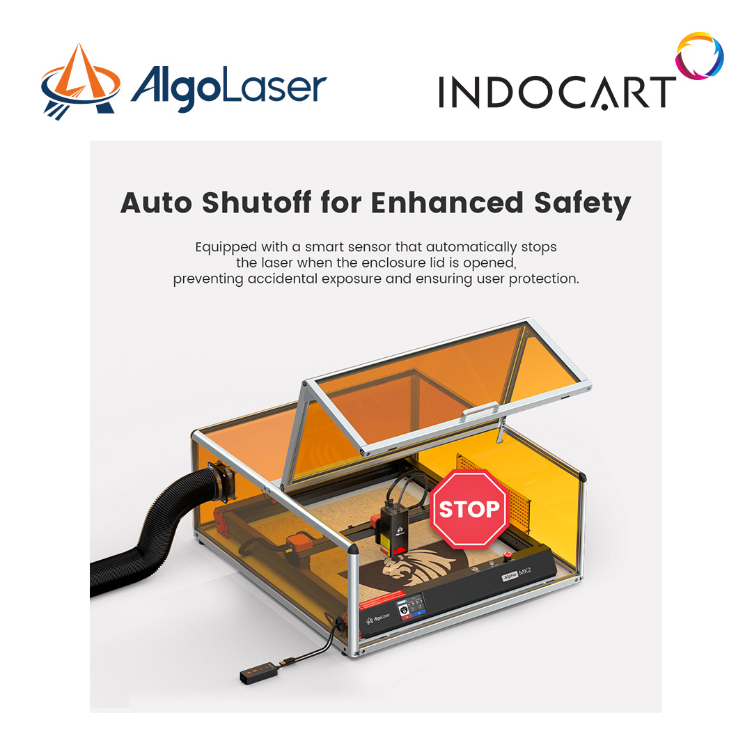 Auto Laser Shutoff : Secara otomatis menghentikan laser saat pintu dibuka untuk keamanan.