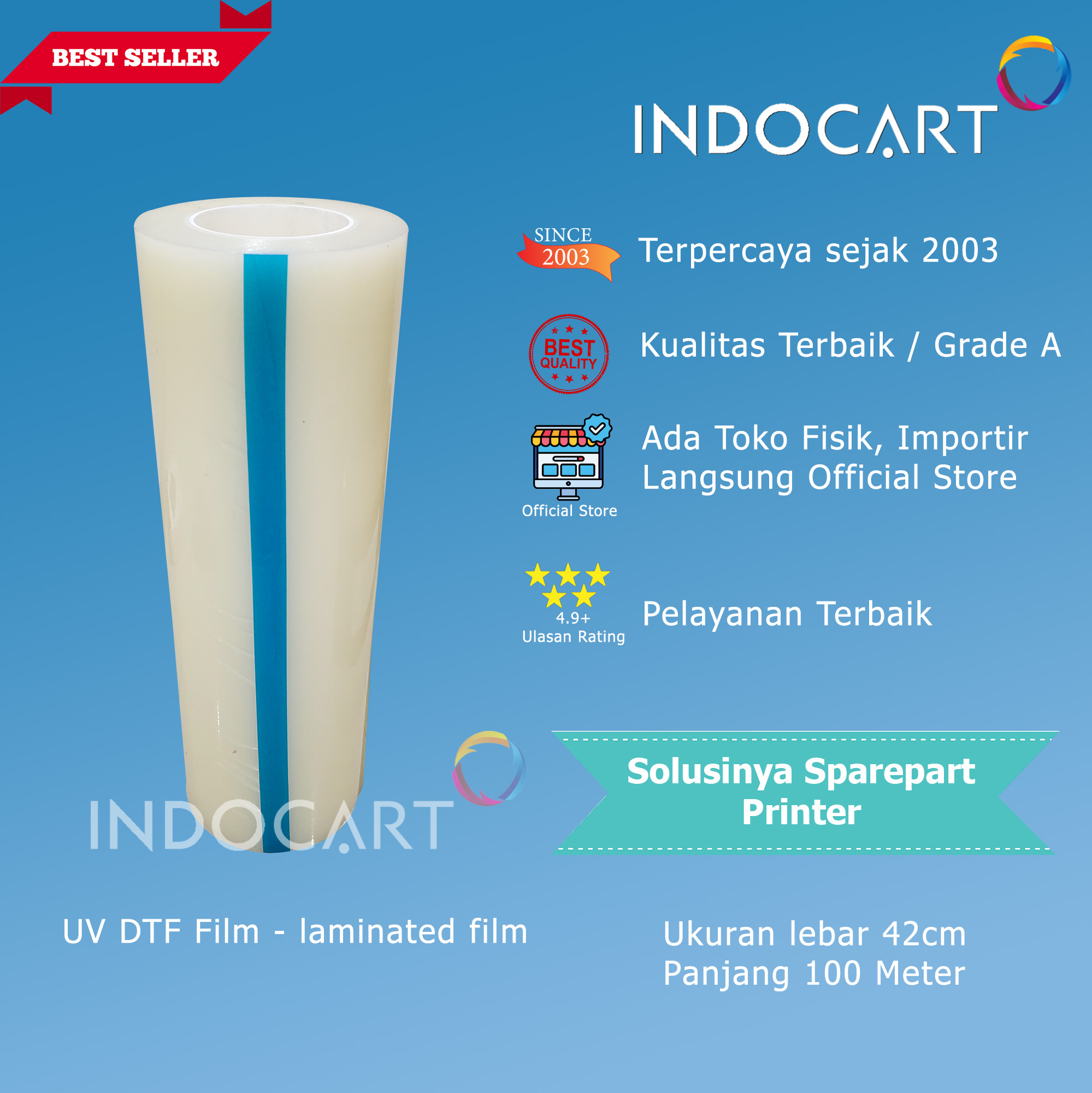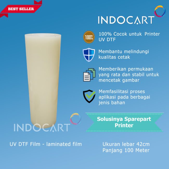 PET film membantu melindungi kualitas cetak dari printer UV DTF. Film ini memberikan permukaan yang rata dan stabil untuk mencetak gambar atau desain dengan detail yang baik dan warna yang akurat.