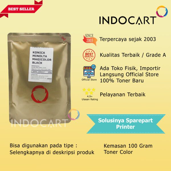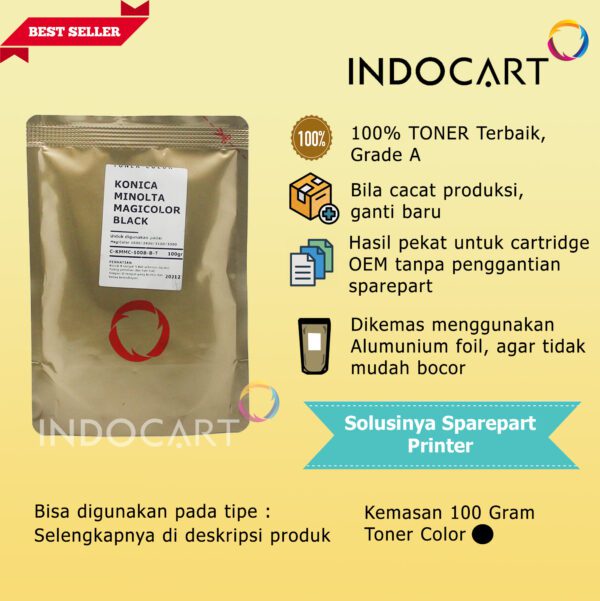Serbuk Toner Chemical, hasil cetak tajam, solid dan mengkilap karena mengandung campuran WAX, melekat sempurna pada suhu rendah.