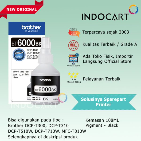 Tinta Original Brother BT5000 BT6000 D-60BK Printer DCP-T220 DCP-T300
